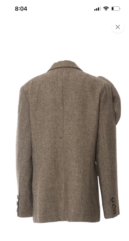 Herringbone Blazer with Bow Detail