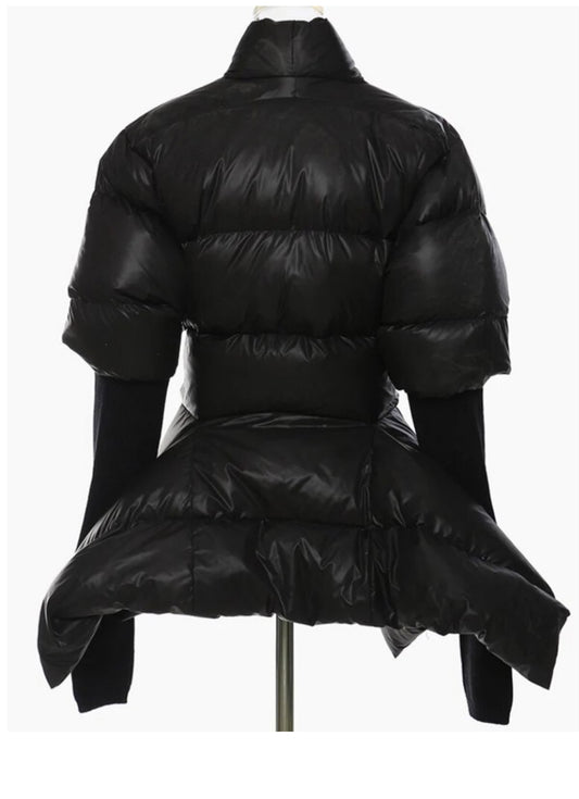 Puffer jacket with ribbed sleeve
