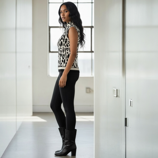 Hali Black Animal Print Burnout Velvet Fur Trim Top