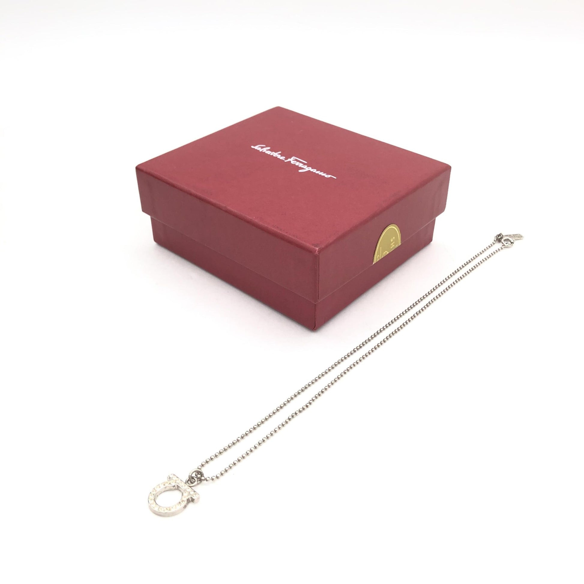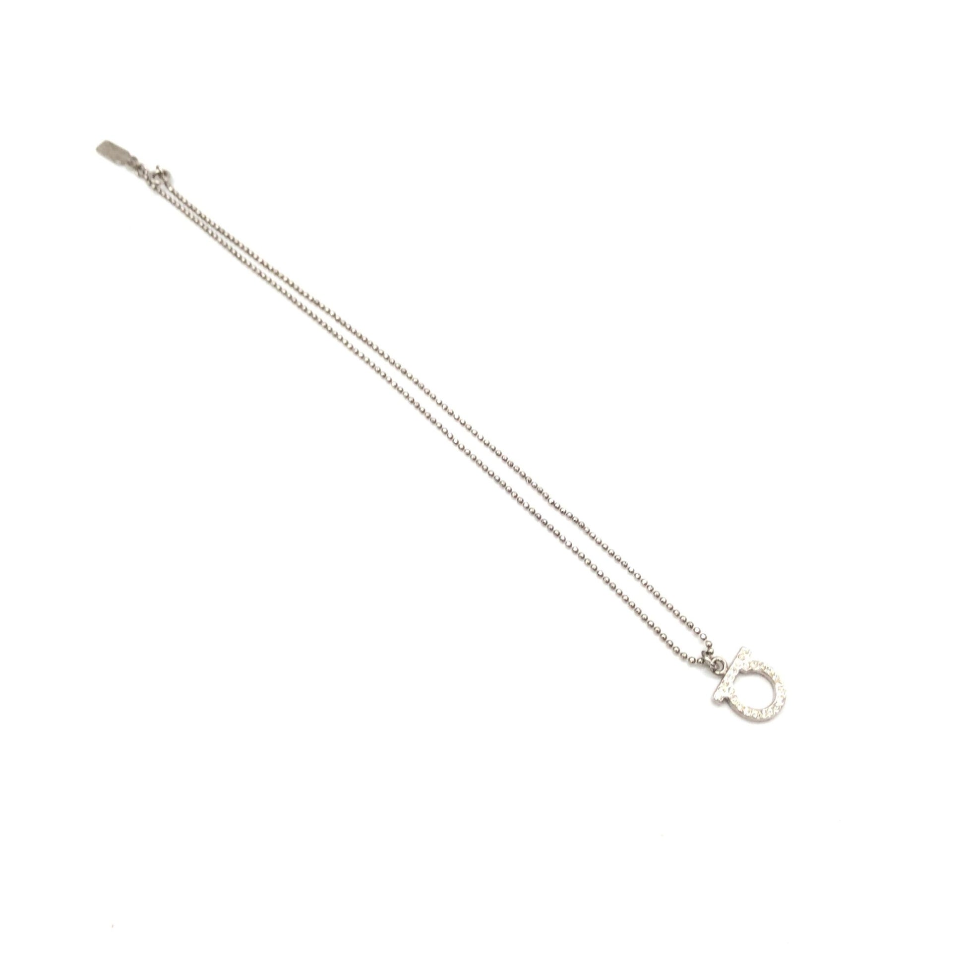 Presenting an exquisite piece from the renowned house of Salvatore Ferragamo: a Silver Plated Necklace with a Crystal Pendant. This elegant accessory embodies the timeless sophistication and meticulous craftsmanship that Ferragamo is celebrated for.