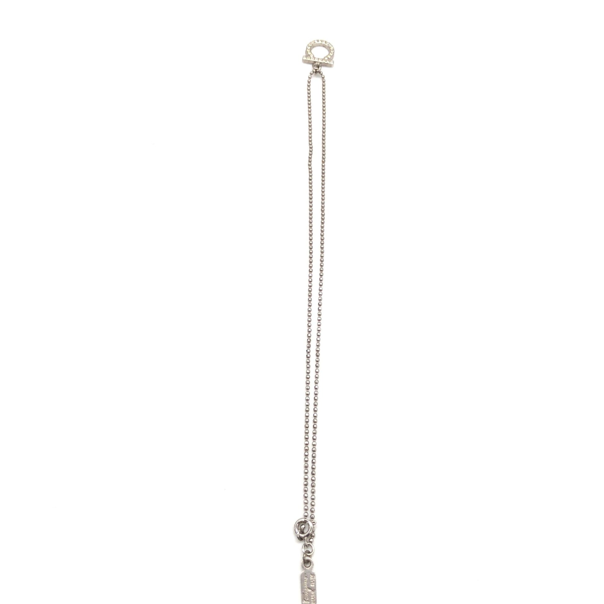 Included with this necklace are its original box and dustcover, ensuring it remains a cherished addition to your collection. This piece is not just an accessory, but a testament to the enduring allure of Ferragamo’s design legacy. Don’t miss the opportunity to own a piece of luxury that speaks volumes of elegance and style.